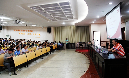 本网讯(党政办 张登高)为深入学习宣传贯彻党的十九大精神,按照学校党委要求和学院党委安排,5月24日下午,学院在九教南102举行学习贯彻十九大精神专题培训。马克思主义学院直属党支部书记米正华教授以《坚持以人民为中心的发展思想,办好人民满意的教育》为题作了专题讲座。学院党委委员、全体教工和学生党员参加了学习。培训由学院党委书记周其林主持。