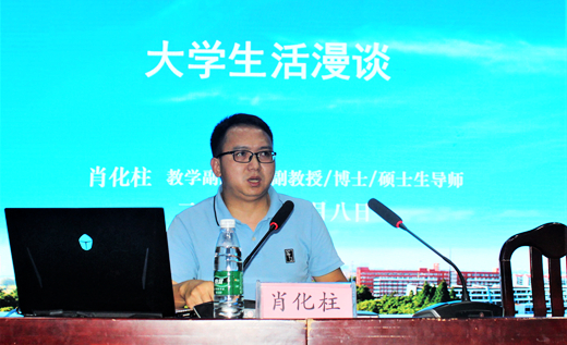 本网讯(经管学部 陈念 谭听 吴攸)为帮助2019级新生更快适应大学生活,学院经管学部与理工学部特联合邀请学院肖化柱副院长于9月8日下午在校大礼堂为794名新生讲授开学第一课,讲座由经管学部学工副主任贺际强老师主持。