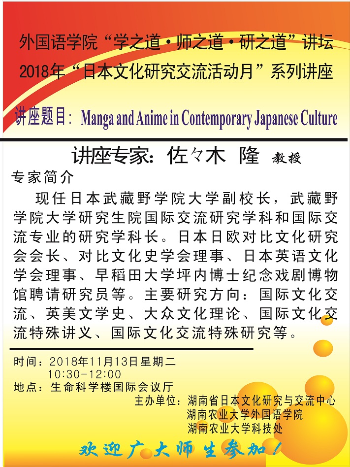 2018年“日本文化研究交流活动月”系列讲座: Manga and Anime in Contemporary Japanese Culture