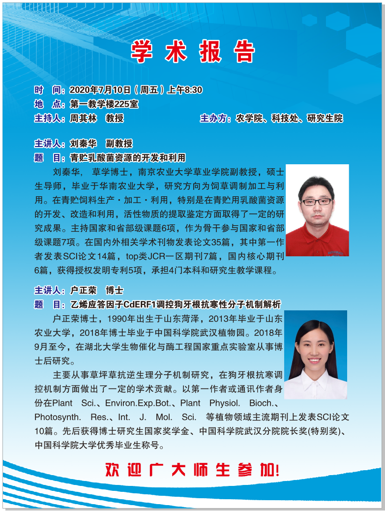 青贮乳酸资源的开发和利用/ 乙烯应答因子CdERF1调控狗牙根抗寒性分子机制解析