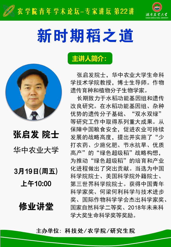 农学院青年学术论坛-专家讲坛 第22讲-新时期稻之道