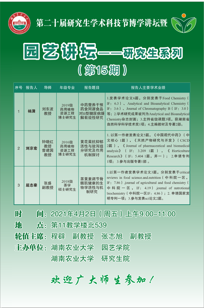 园艺讲坛--研究生系列(第15期)