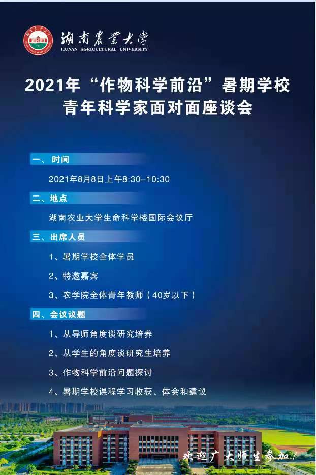 2021年湖南农业大学“作物科学前沿”暑假学校活动日程