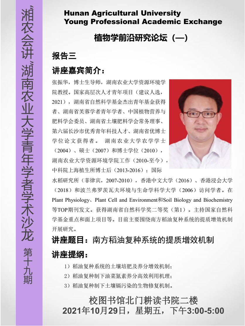 植物学前沿研究论坛(一)南方稻油复种系统的提质增效机制