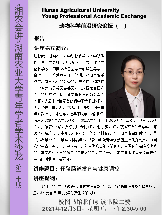 “湘农会讲”湖南农业大学青年学者学术沙龙第二十期报告二