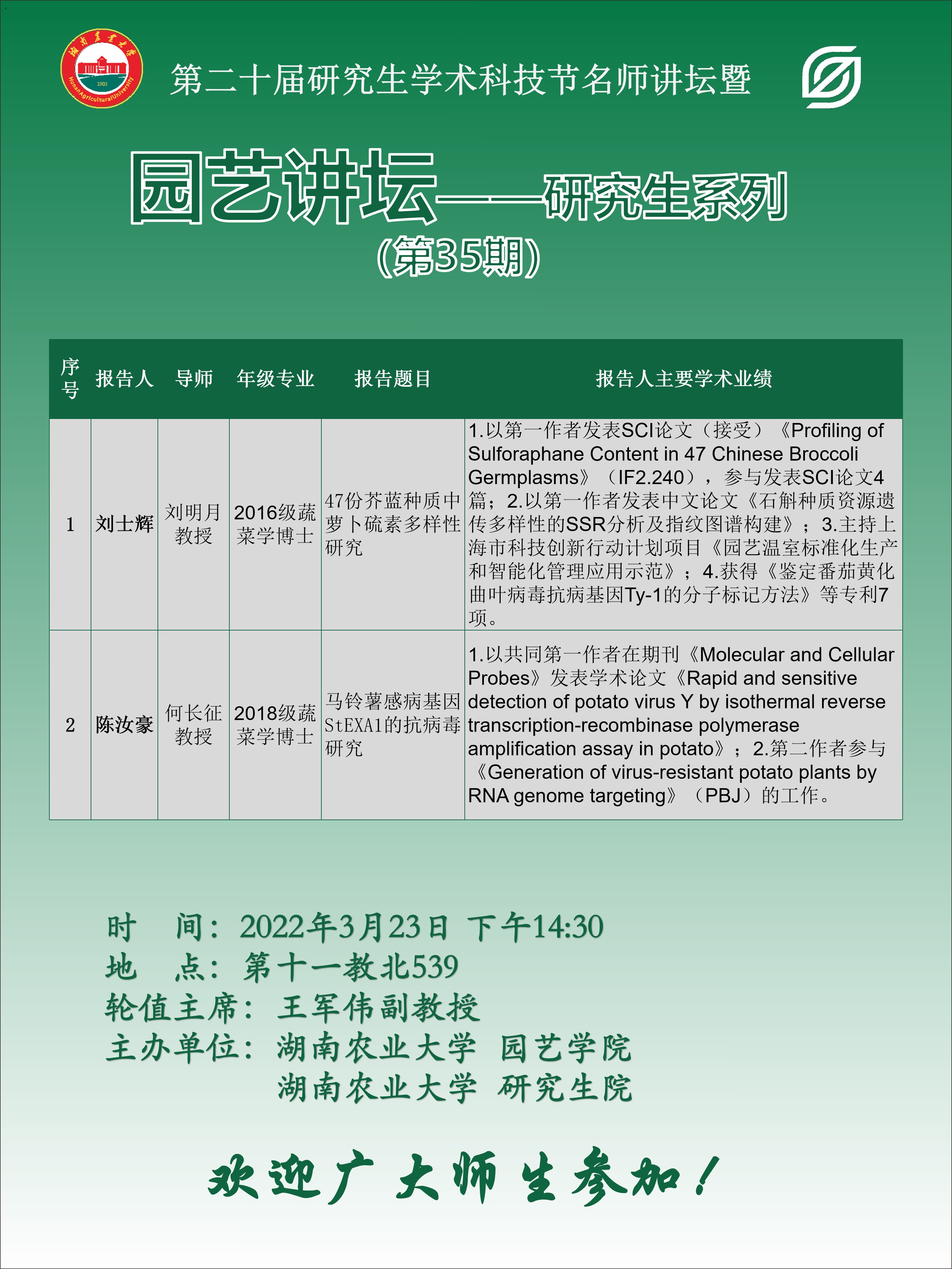 园艺讲坛--研究生系列(第35期)