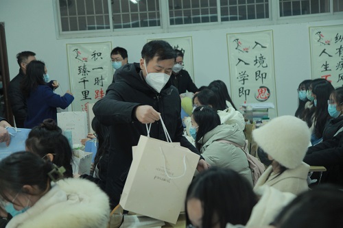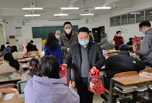 走访慰问过程中,学院领导与备考的考研学生亲切交流,了解大家的备考情况、思想动态,为他们加油鼓劲,并叮嘱他们做好疫情个人防护。学院常务副院长李觅路寄语同学们一定要保持初心,一定要坚持到底,并祝愿所有考研同学马到成功。学院党委书记史云峰希望考研的同学们调整好状态,不要过于焦虑,心无旁骛,专心备考。学院领导还给考研学生赠送了“考研加油包”600多份,送上了不一样的温暖。