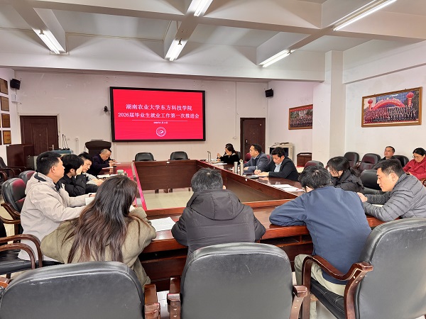 本网讯(招生就业创业指导中心 陈斌)为贯彻落实“寒假促就业暖心行动”,谋划部署2026届毕业生就业工作,1月14日,学院召开2026届毕业生就业工作第一次推进会。院领导、党委委员,招就创中心全体工作人员,各学部主任、学工副主任、就业专干、毕业班辅导员、毕业班班主任参加会议。会议由副院长刘逊主持。